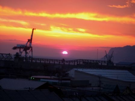 朝焼けの写真、遠くに見えるのがどうしても「キリン」に見えてしまいます。