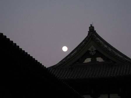 大仏殿の中門の所にお月様が見えました。