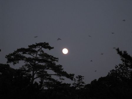 木立と鳥達とお月様