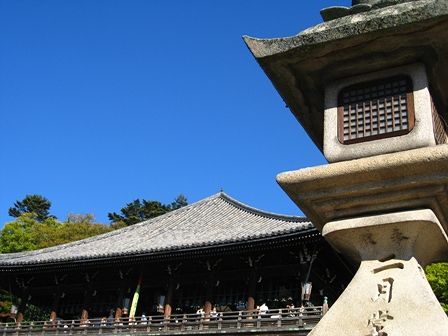 三月堂です。観光客が三月堂の前で「三月堂はどこだ」と探していました。