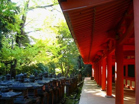 春日大社の建物の朱色と黄色が良いコンビネーションですね。