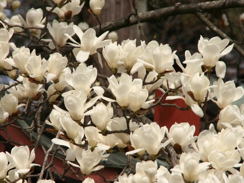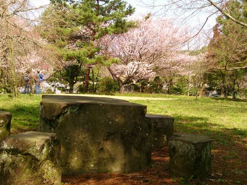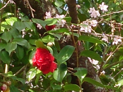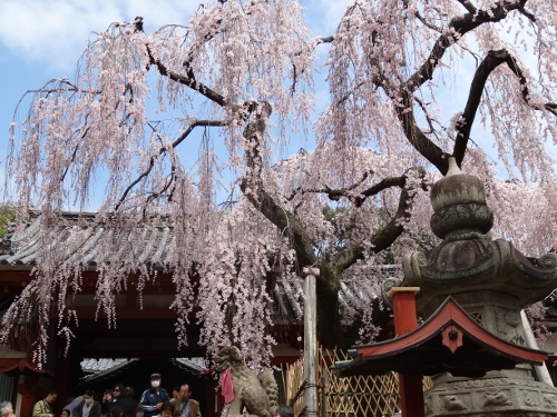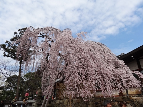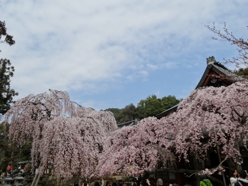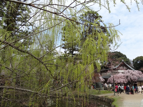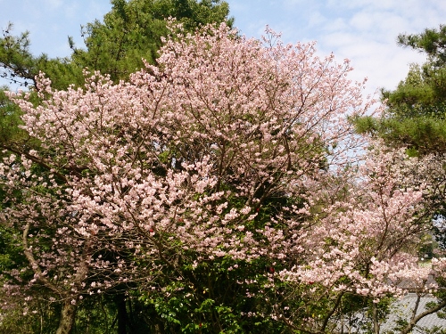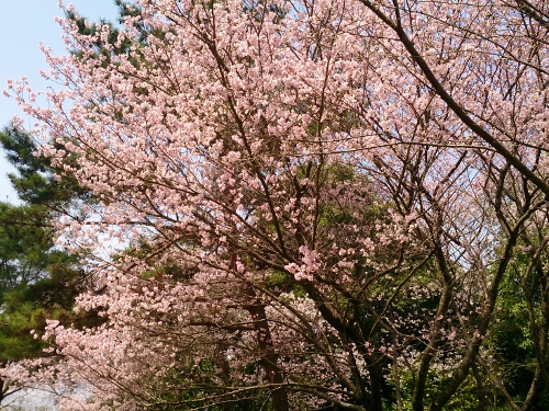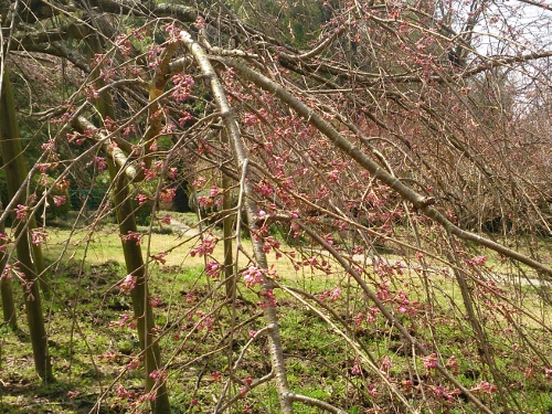 右の手前が早咲きの桜で、その向こうがしだれ桜です。