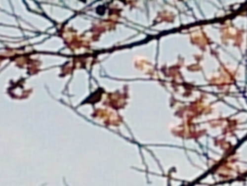 メジロが一杯いました。でも、小さくて、スマホのズームはこれが限界です。