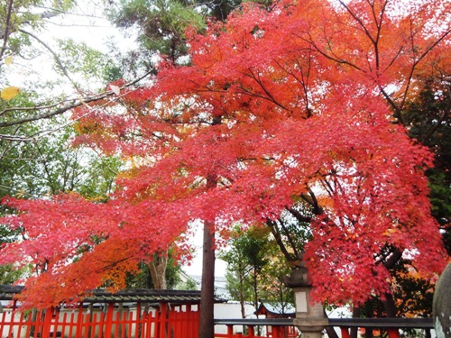 少し上の方から、境内を眺めると全体が真っ赤です。