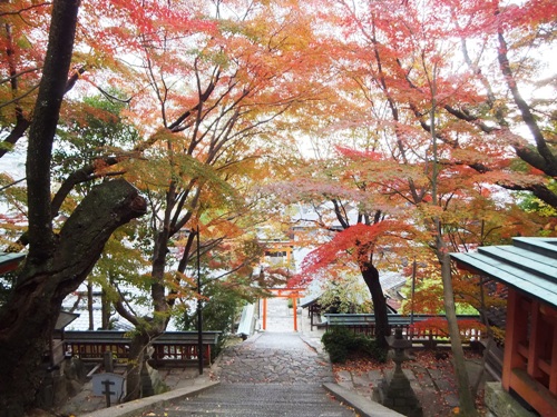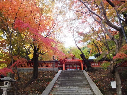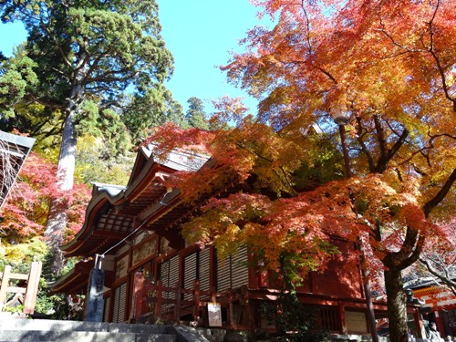 階段の上には、本殿があります。周りも紅葉で綺麗です。