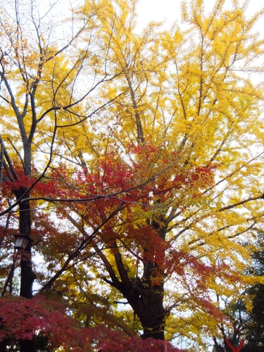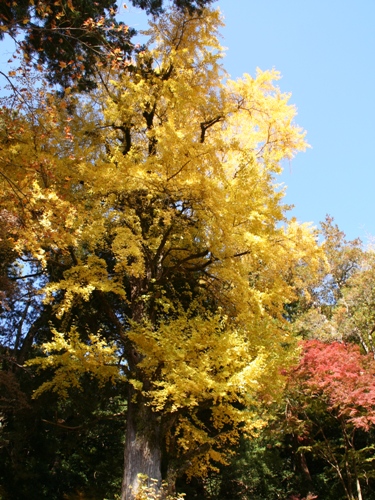 我が家のベランダから、瑜伽神社(ゆうがじんじゃ)の大きなイチョウの木が見えます。かなり黄葉してるようなので、見に行きました。11/22(金)