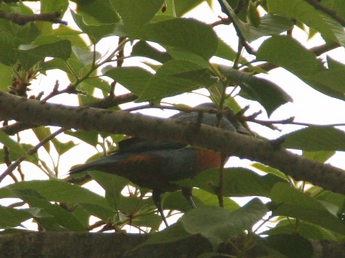 帰り道、胸がオレンジ色で、尻尾が青い野鳥を見つけました。