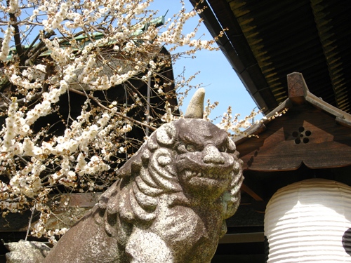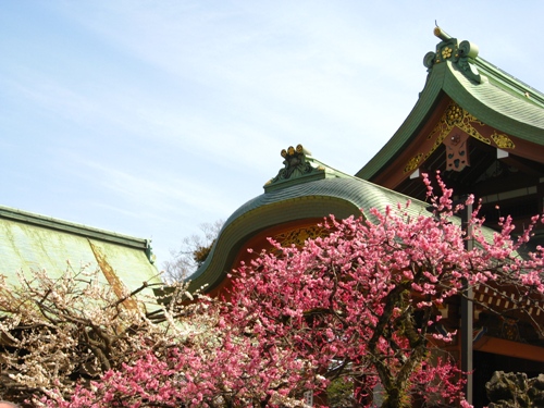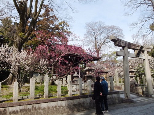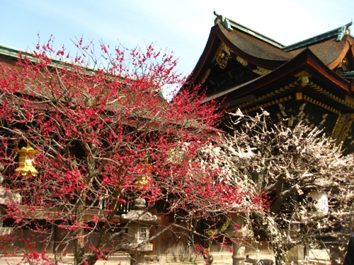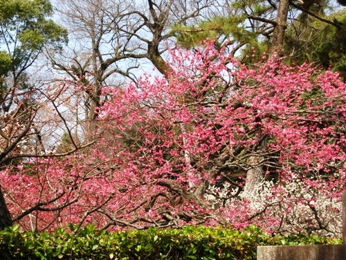 神苑だけでなく、境内にも梅がたくさん咲き誇っています。