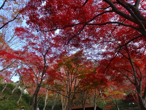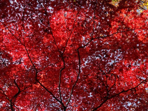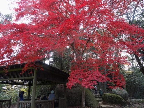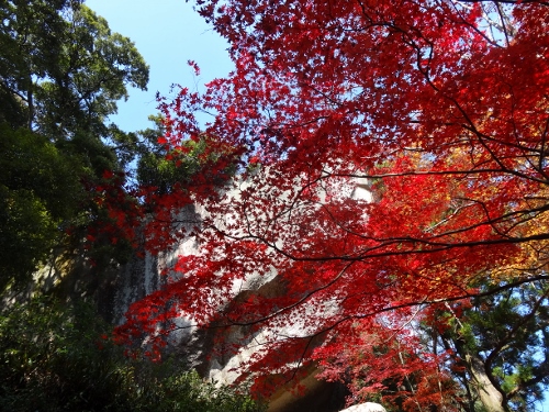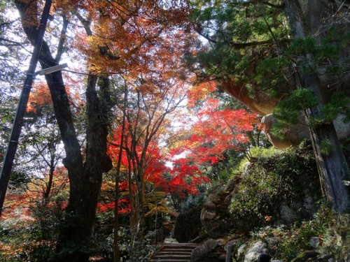 境内の紅葉は見頃で、燃えるような赤色でした。
