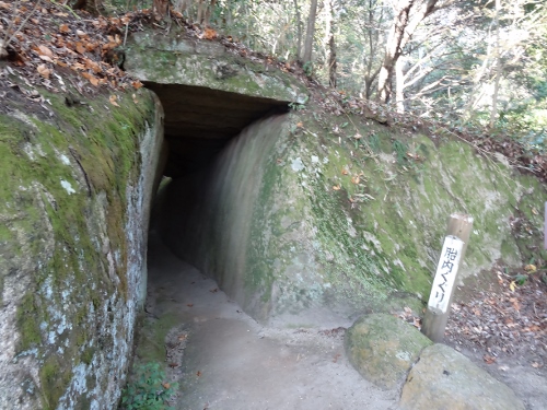 「胎内くぐり」 かなり狭い岩の中を通って行きます。全員通過出来ました。