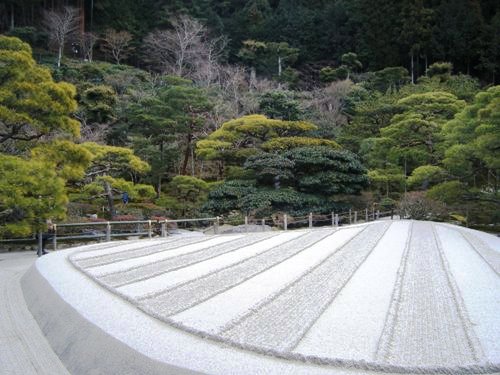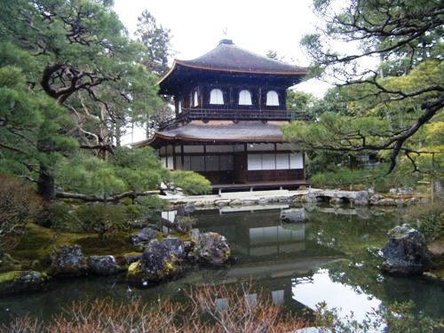 まずは銀閣寺。パソコンの画面で見ると雪が降っているのが分かります。