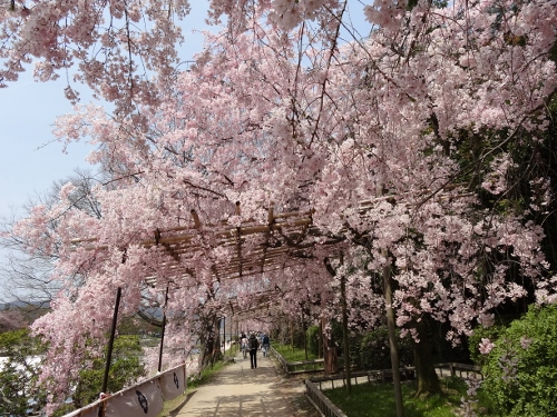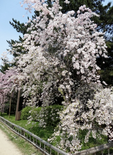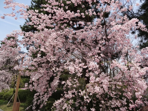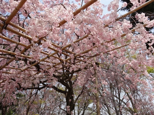 近衛邸跡の糸桜は、もうピークを過ぎていて、ちょっと散っていました。