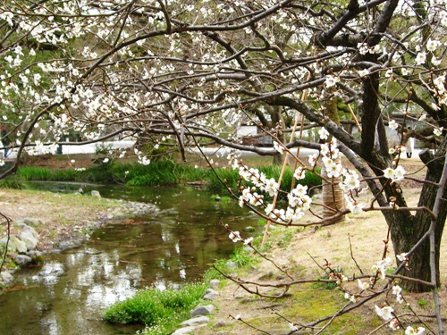 出水の小川と白梅