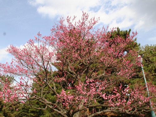 緋梅も綺麗です。