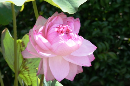 入園料は300円です。群生の蓮は一種類ですが、植物園の蓮はいろんな種類があります。お馴染みの大賀蓮を初め、いろんな蓮が開花してました。その中で以前から見たかったのが、ミセススローカムです。喜光寺では2回共この花は咲いていませんでした。ところが、今回やっとこの花に対面する事が出来たのです。ミセススローカムはアメリカとアジアの蓮を交配した八重の蓮です。とても優雅でちょっと気品がある感じがします。
