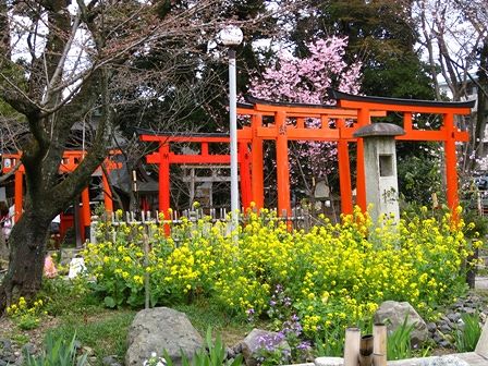赤い鳥居と黄色い菜の花のコントラストがきれいです。アーモンドの花が京都にもあるんですね。奈良でも探せばあるんでしょうかね?
