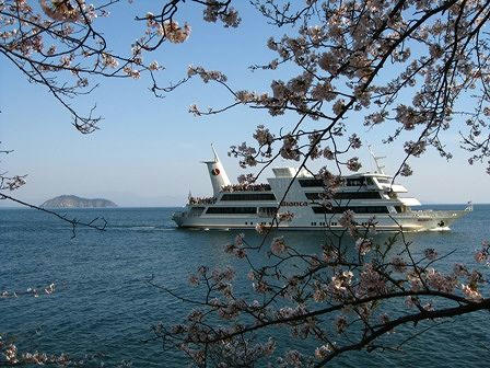 海からのお花見でしたが 寒くて6分咲きでしたが それでもすばらしい景観でした。
