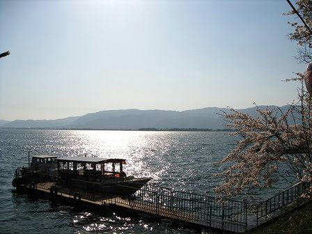 青空だけではなく湖の青と桜も映えますね。12日に奈良市東部の布目湖で桜を見てきましたが、琵琶湖とは規模が違いすぎます(笑)