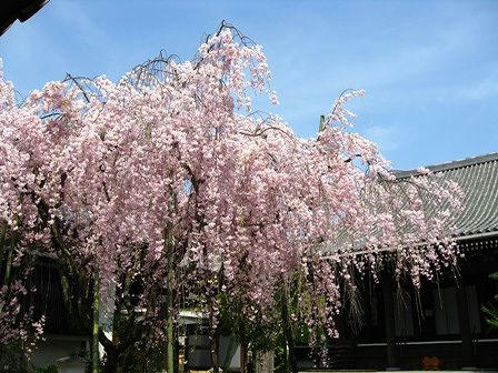 三条通りにある浄教寺のしだれ桜 満開です。