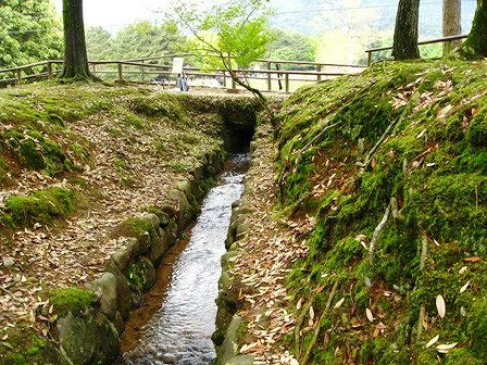 この水路は円窓亭の横を流れ、片岡梅林の真ん中を抜け、