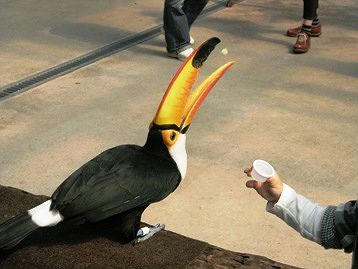 餌やりは、インコやオウム、サイチョウもあるんですが、