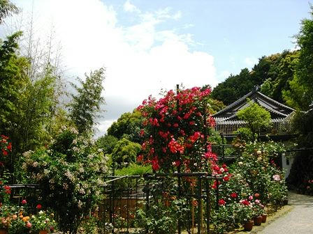 お寺の境内にバラ園があるというのは奈良以外では知りませんし、少なくとも横浜にいたときには聞いたことがありませんでした。(鎌倉にも山野草を大事に育てているお寺は幾つかありましたが、バラは…)