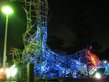 これは国立博物館前のオブジェです。竹で出来ていて、ライトがいろいろ変わります。