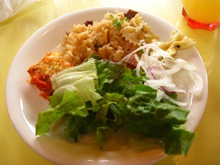 サラダバーは、サラダだけでなく、パンやライスやいろんな前菜もあります。