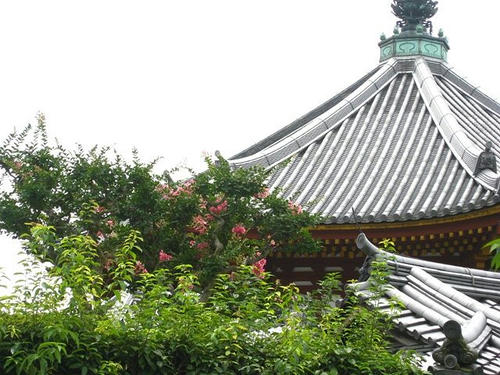 南円堂とサルスベリ この角度からは花がほとんど見えません。