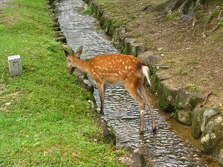 片岡梅林にて 鹿さんも暑くて思わず、足を水につけてます。