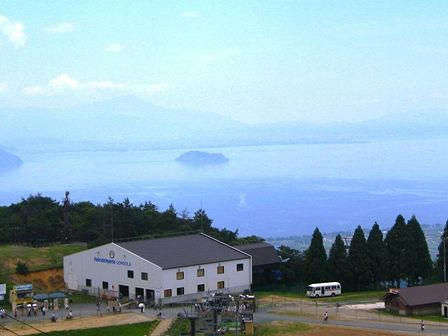 山頂からの景色。快晴なんですが、湖面はちょっとガスってます。