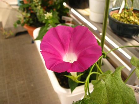 朝顔が復活してよかったですね。うちは宿根性の琉球朝顔なので、毎年同じ場所から芽が出ます。南側の窓にネットをはって、省エネに貢献して貰っているつもりです。