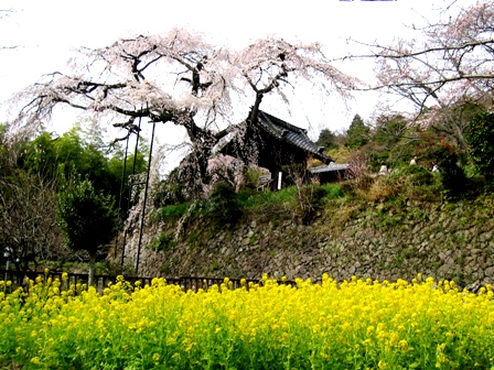 ニュースでもやってたのですが、ここは樹齢270年の1本のしだれ桜が天然記念物で、この木の姉妹桜が円山公園のしだれ桜だそうです。それと夫婦桜と呼ばれているペアのしだれ桜もあります。(どっちがダンナさんでどっちが奥さんなんでしょうか?)そして、ご住職さんのお話では、夕日が沈む時が一番しだれ桜がきれいなのだそうです。でも、残念ながら、夕日が沈む時間まで待てませんでしたので、その絶景は見れませんでした。ただ、たまたま逆光で撮った写真がシルエットになって、ちょっと良い感じかなと思うので、その写真をアップします。