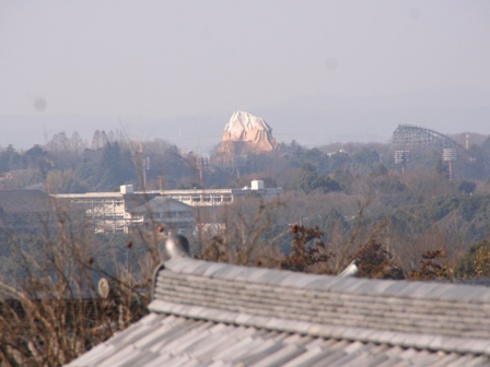 南側の階段の上から景色をながめるとドリームランドの跡地が見えます。