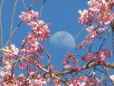 昼間の月に桜をうまく撮られましたね。これから八重桜のシーズンですね。