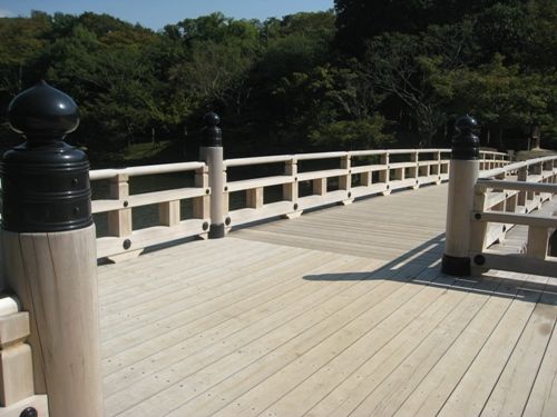 とても暑かったのですが、鷺池に向かいました。すると浮見堂の橋が何か様子が違います。