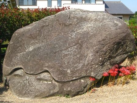 飛鳥駅まで、歩いて行きます。途中の亀石。