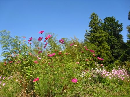 コスモスがあちこちに咲いてます。