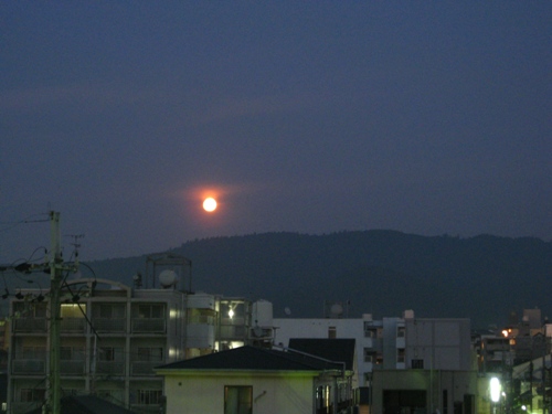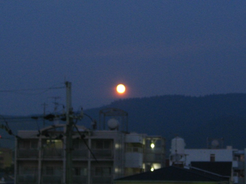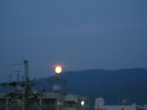 ベランダをふと見ると春日山からお月様が半分位顔を出してます。