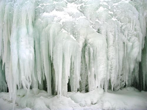 やっぱ北の山の方が積雪も樹氷も立派ですね。氷瀑ですね、人工の物とは・・
