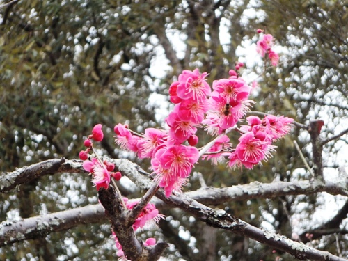 曇ってるので、白梅は見にくいですが、紅梅は目立ちますね。