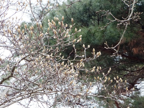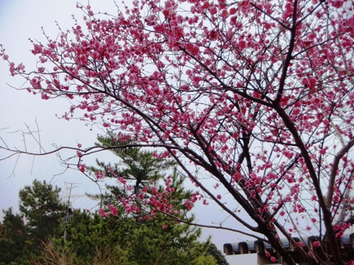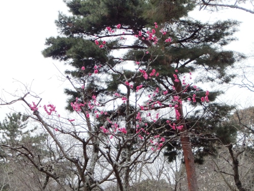国立博物館前の紅梅は満開でした。バス停の所です。