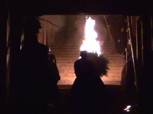 修行僧が入堂する時にあの松明で、案内をするのです。