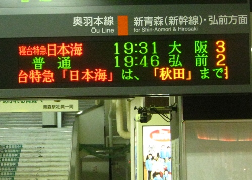 私達が乗車したのは、青森発大阪行きです。
