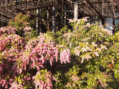 横には、白いアセビが咲いていて、紅白で良いですね。