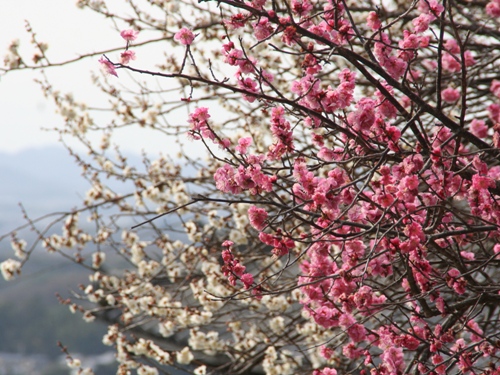 お水取りの頃に飯道神社の紅梅は散りかけだと思っていたのですが、白梅と揃ってきれいですね。