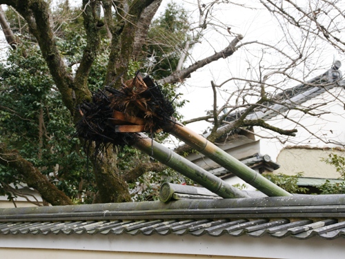 お水取りの時のお松明が立てかけてあります。