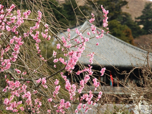 二月堂と紅梅です。一眼レフのズーム撮影です。