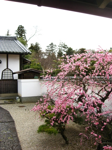 裏参道を歩くといろいろ見られます。可愛い紅梅です。