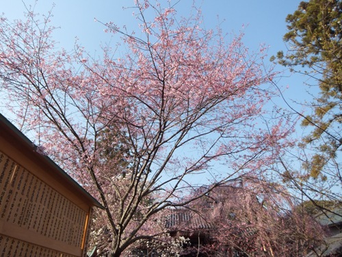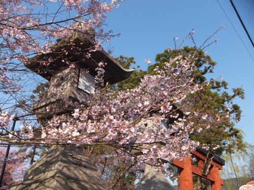 鳥居横に桜が咲いていました。ちょっとわくわくしますね。